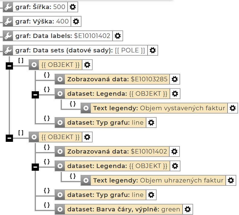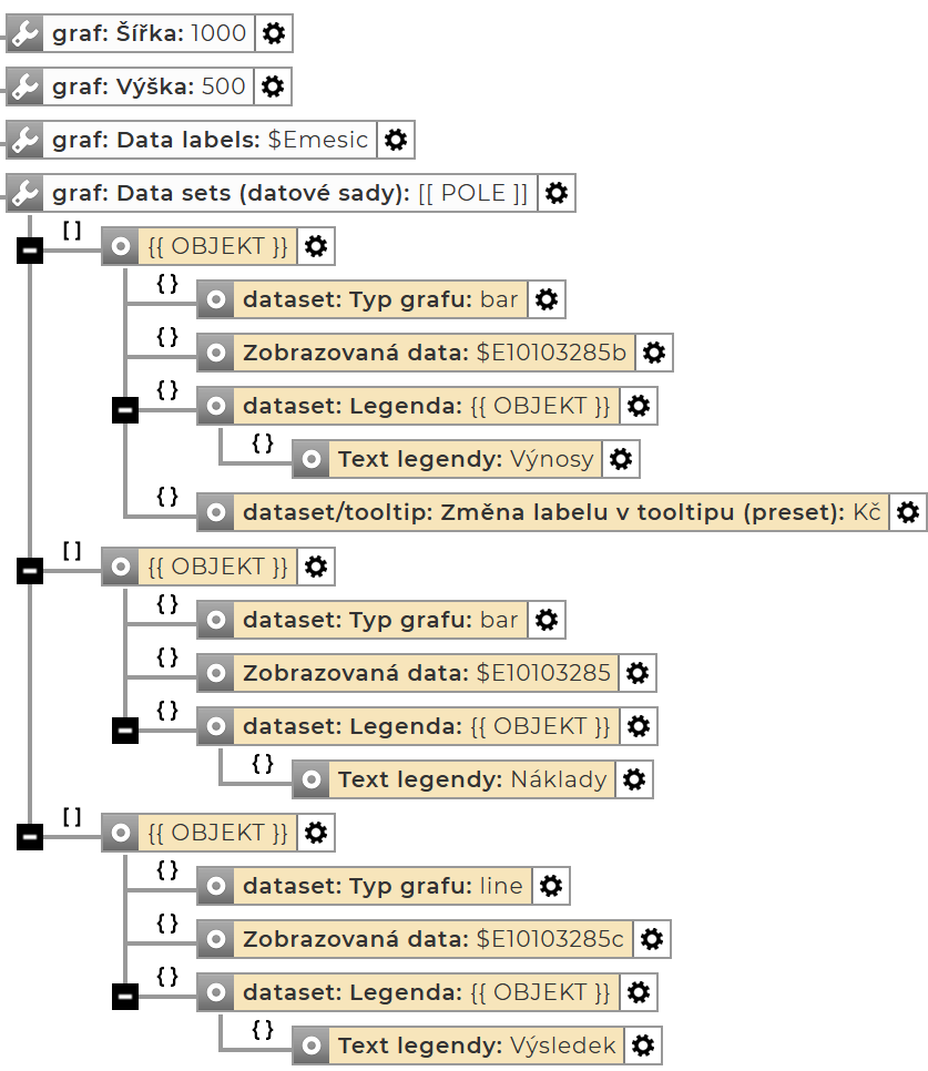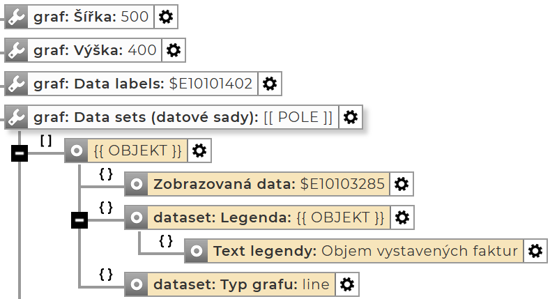 Data sets – každý graf musí obsahovat alespoň jednu datovou sadu: