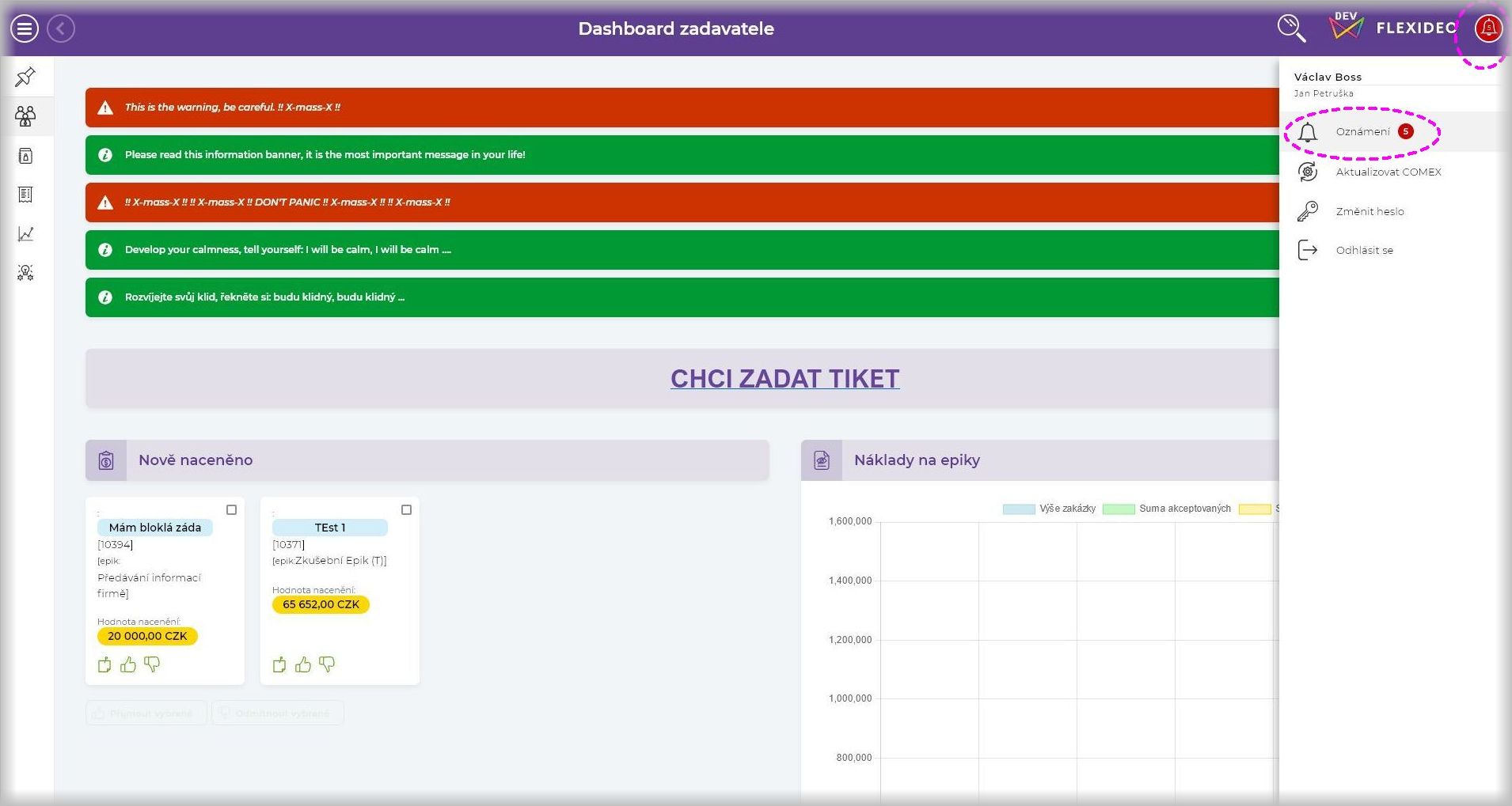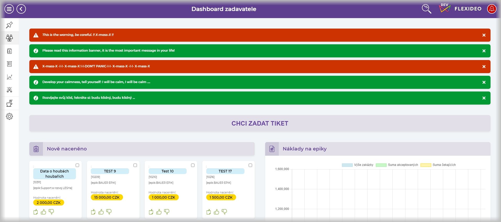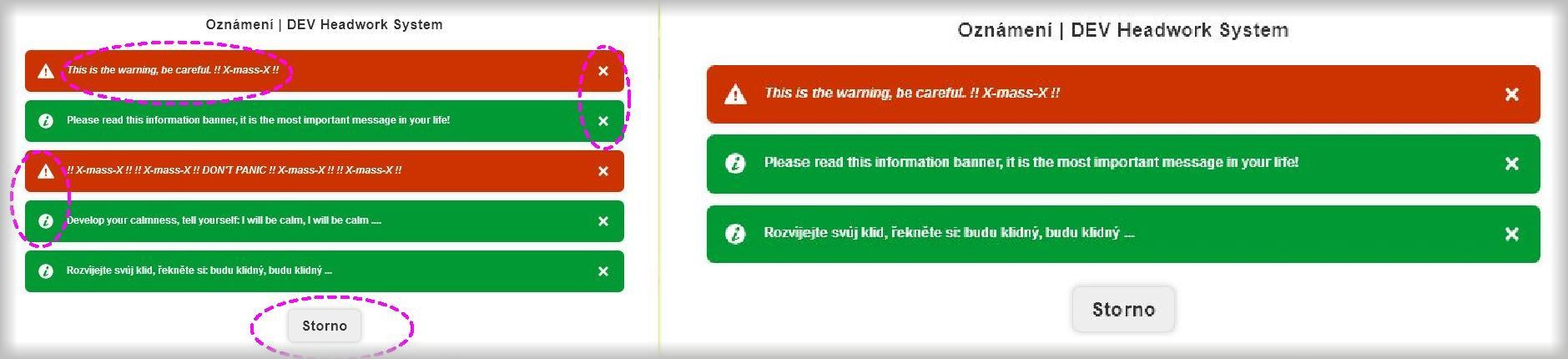 /* přidat parametry nebo odkomentovat parametry */$custom.messenger = true;$custom.Alerts.enabled = true;$custom.Alerts.useMessenger = true;/* zadat svoje vlastní info-bannery, warning-bannery jako pole hodnot $custom.Alerts.messages *//* "typ-banneru|Date-Time expirace|<em>Text zprávy upozornění - message alert s HTML tagem </em>" */$custom.Alerts.messages = ["warning-banner|2024-12-24T06:25:10|<em>This is the warning, be careful.!!X-X!!","info-banner||Read this info banner, it is the most important message in your life!","warning-banner|2024-12-24T06:35:10|<em>!!X-X!!X--X!! DON'T PANIC !!X--X!!X-X!!","info-banner|2024-12-24T06:42:20|Develop your calmness, tell yourself: I will be calm, I will be calm ....","info-banner|2024-12-24T06:42:30|Rozvíjejte svůj klid, řekněte si: budu klidný, budu klidný ... "];
