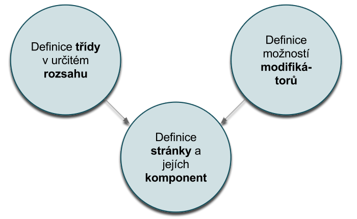 stránky - definice náhledů uživatelského rozhraní jedné aplikace Flexideo spojující modifikátory a třídy;