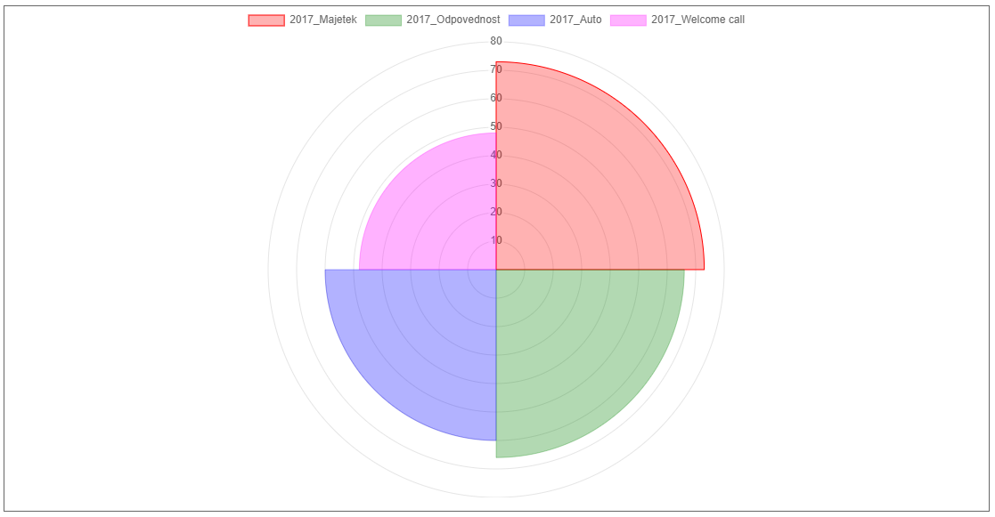 Všechny datové sety grafu typu polar by měly obsahovat právě jednu hodnotu.