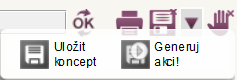 Aby bylo možné akci provést, je potřeba jí po jejím nastavení ještě vygenerovat. Bez generování akce dojde pouze k uložení jejího nastavení a akci nebude možné spustit. V menu vpravo vedle adresního řádku najedeme na šipku vedle ikony pro uložení a zobrazí se možnostGeneruj akci!