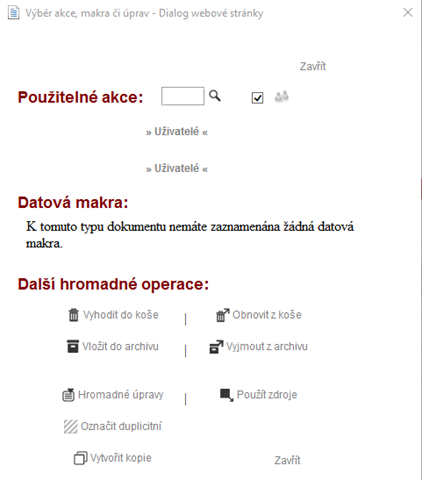 Otevře se dialogové okno s nabídkou možných akcí a dalších hromadných operací.