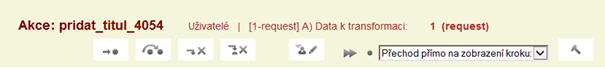 Krokování akce bude spuštěno v novém okně. V horní částije menu, kde je možné se šipkami posouvat o krok vpřed, přeskočit následující krok, zastavit akci, přidat poznámku, v rozbalovacím menu přecházet přímo na konkrétní kroky a ikonou kladívka přejít přímo do nastavení akce.