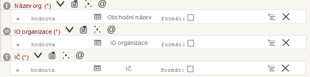 Nový dokument se vytváří automaticky, podlevybraného typu. Do jednotlivých uzlů, které chceme vyplňovat pouze zapíšeme data, která budou akcí vyplňována. Např.: