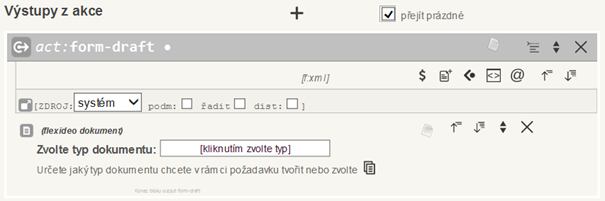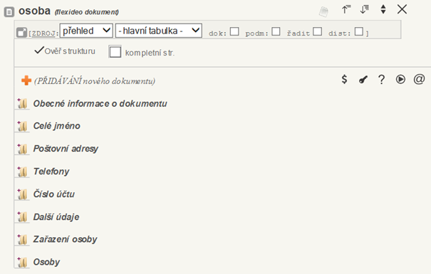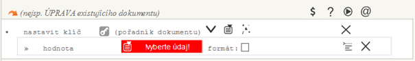 V řádku, kde je rozlišeno, zda sepřidává nový nebo mění již vytvořený dokument, najdeme několik dalších ikon. Tyto ikony (možnosti) jsou dostupné jak pro celý dokument, tak i pro jeho jednotlivé uzly: