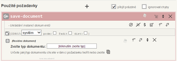 Existujeněkolik druhů požadavků, které můžeme využít, nejčastěji používaný je Uložení dokumentu (save-document).