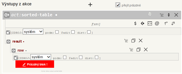 Přejít prázdné = provedení akce se nezastaví na prázdném výstupu