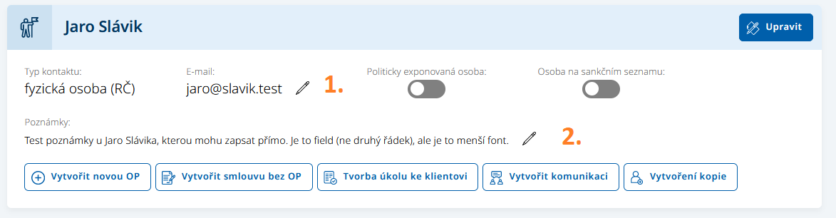 Šablona pro editace textu z náhledu pomocí dialogu. Pomocí ikony pro editaci zobrazené vedle textu poznámky umožní editaci v COMEX dialogu.