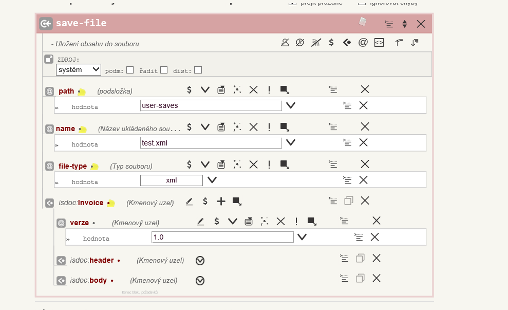 Předpokládejme akci typu save-file, která ukládá ISDOC (viz obrázek). Jak volbu nastavit