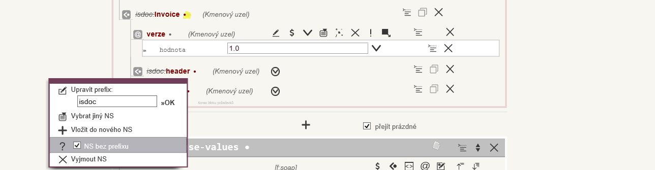 - Názvy uzlů se generují bez prefixu (např. Doklad místo isdoc:Doklad),