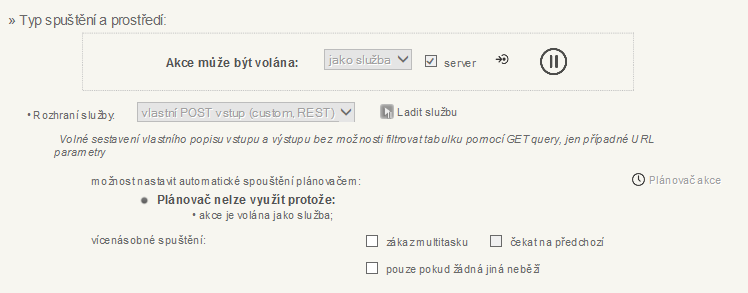 1. akci nastavíme jako webovou službu s vlastním POST vstupem