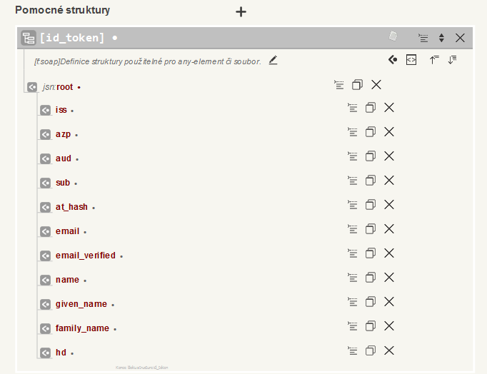 2. definujeme pomocnou strukturu jsn:root pro dekodování JWT (JSON Web Token), který obdržíme v odpovědi z Googlu na authorization_code_request v OAuth procesu