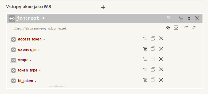 3. definujeme vstup do akce, v bodu 2. zmiňovaný json:root