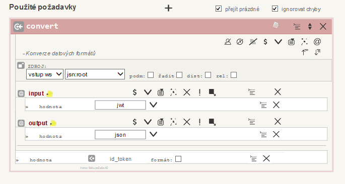 4. požadavkem Convert provedeme decode JWT do pomocné struktury id_token
