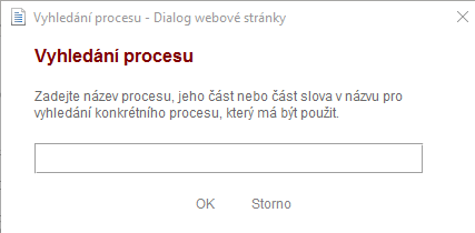 Otevře se dialogové okno, kde je potřeba vyhledat odpovídající proces, do kterého má být přehled zařazen. Postačí zadat několik počátečních znaků názvu procesu anásledně ho vybrat z vyhledávací nabídky.