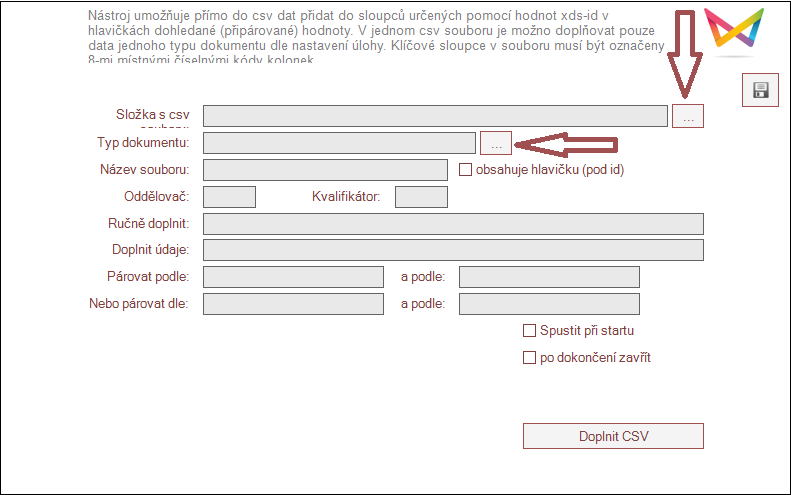 Složka s csv soubory - složka se soubory, které mají být doplněny dle daného typu dokumentu.
