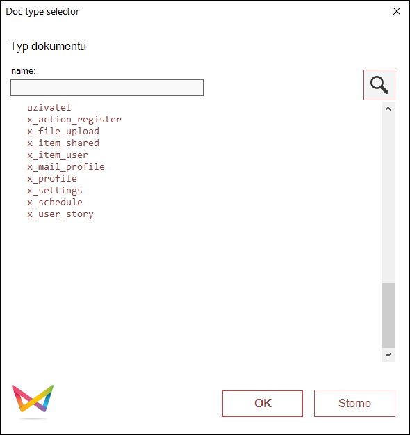 Typ dokumentu - zde se zadává systémový název dokumentu, který má být importován.