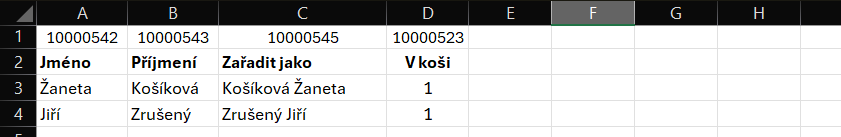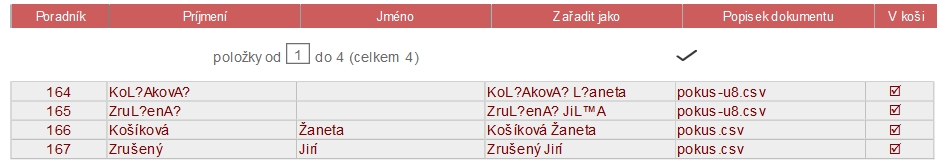 Když například uděláme tabulku pro import, kde budou tato jména: