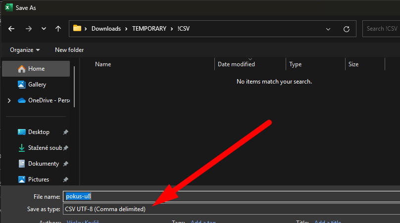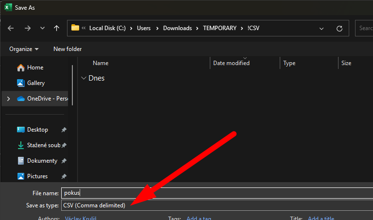 Pro účely importu je třeba, při ukládání z tabulky dát pozor na kódovou stránku. Je třeba zvolit tu aktuální pro operační systém, protože i tu předpokládá nástroj pro import CSV dat.