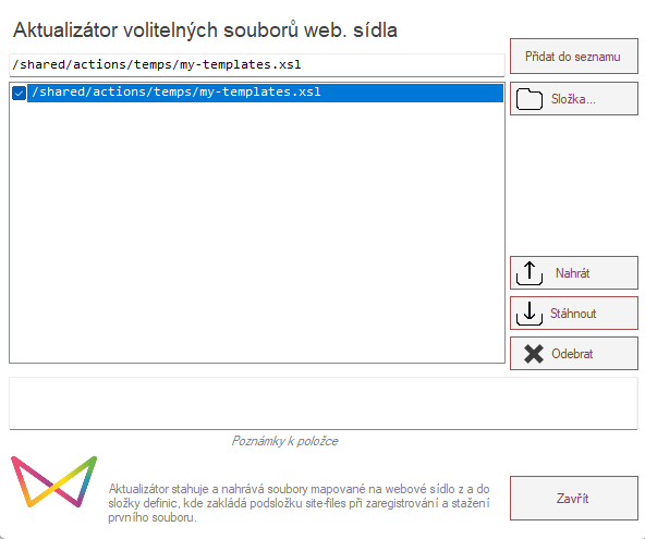 Každopádně je doporučeno mít soubor nejen na sídle, ale i v definiční složce, pak je možné zvolené soubory jednou volbou dát aktualizovat na potřebnou instanci, například při přenosu nové verze.