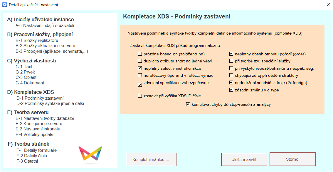 - zastaví kompletaci v případě, že kmen služby nemá platný odkaz do dokumentu a ani jeho jméno neodpovídá žádné kmenové oblastidokumentu; při vypnutí se tvoří tzv. speciální služba bez odkazu (obecně k tvorbě služeb viz.
