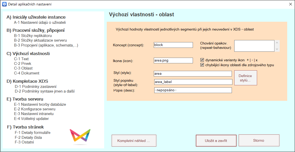 Ikona (icon) - zde je možnost nastavení dynamické varianty ikon +|-|x a také možnost nastavení chybějící ikony oblasti dle zdrojového typu