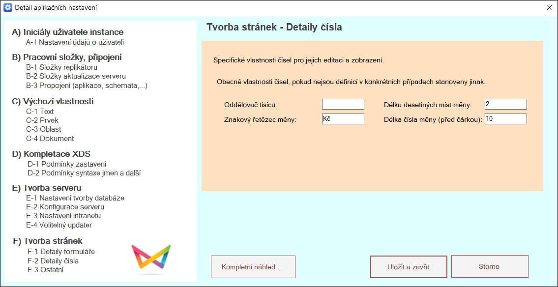 Specifické vlastnosti čísel a jejich nastavení pro editaci a zobrazení. Jde o obecné vlastnosti, pokud nejsou definicí v konkrétních případeh stanoveny jinak.