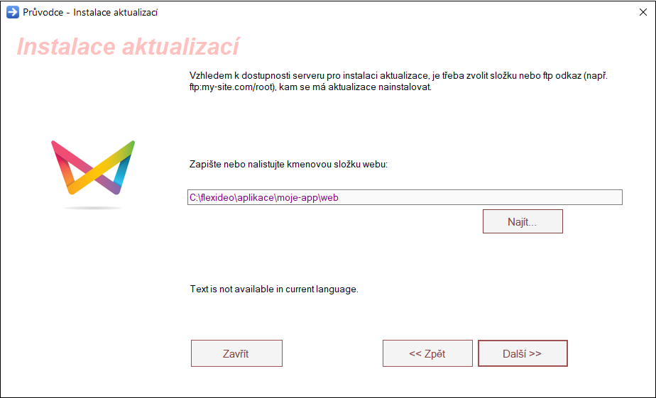 V tomto kroku nalistujete nebo zapíšetekmenovou složku webu.