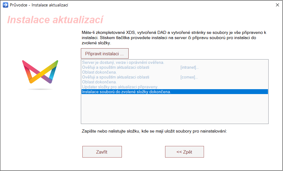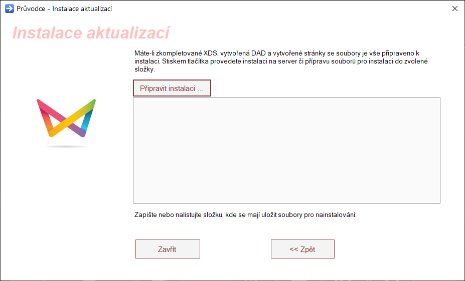 Zde se Vám zobrazuje okno s přípravou instalace. A to za předpokladu, že máte kompletní XDS a vytvořenéDAD. Pak už jen stačí kliknout na tlačítko Připravit instalaci.