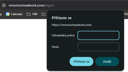 Defaultní chování aplikace je, že nepřihlášenému uživateli ukáže base auth dialog, pomocí kterého se může přihlásit: