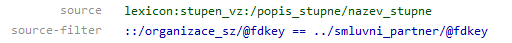 Source-filter může využívat hodnoty z některé ze services na připojovaném dokumentu. Že se jedná o připojovaný dokument určíme pomocí ::/ na začátku - následně se nám začnou nabízet services připojovaného dokumentu.